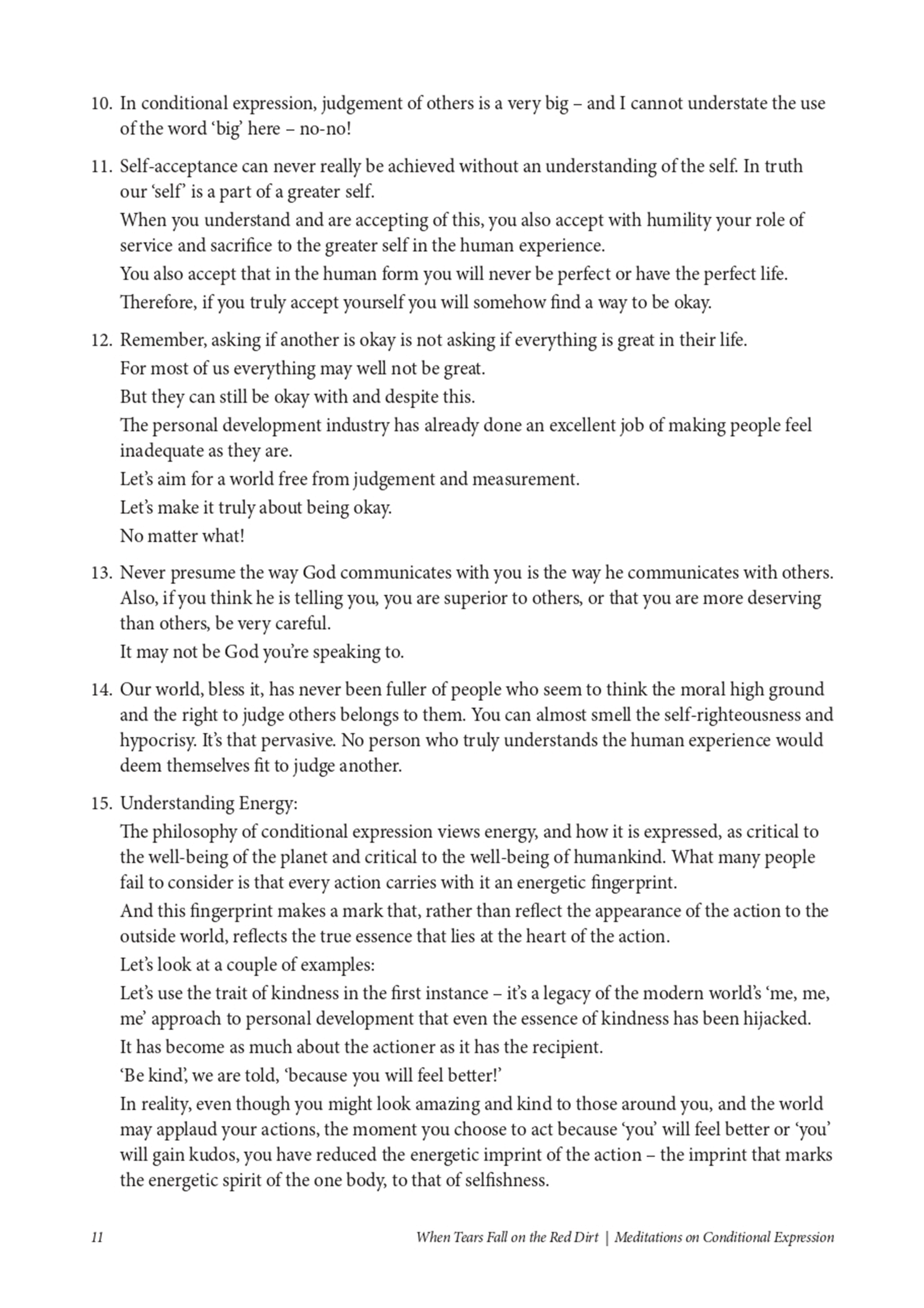 As is the case with the ‘Meditations’ books which came before, When Tears Fall on the Red Dirt shares God’s anguished voice of concern at the worlds treatment of life.